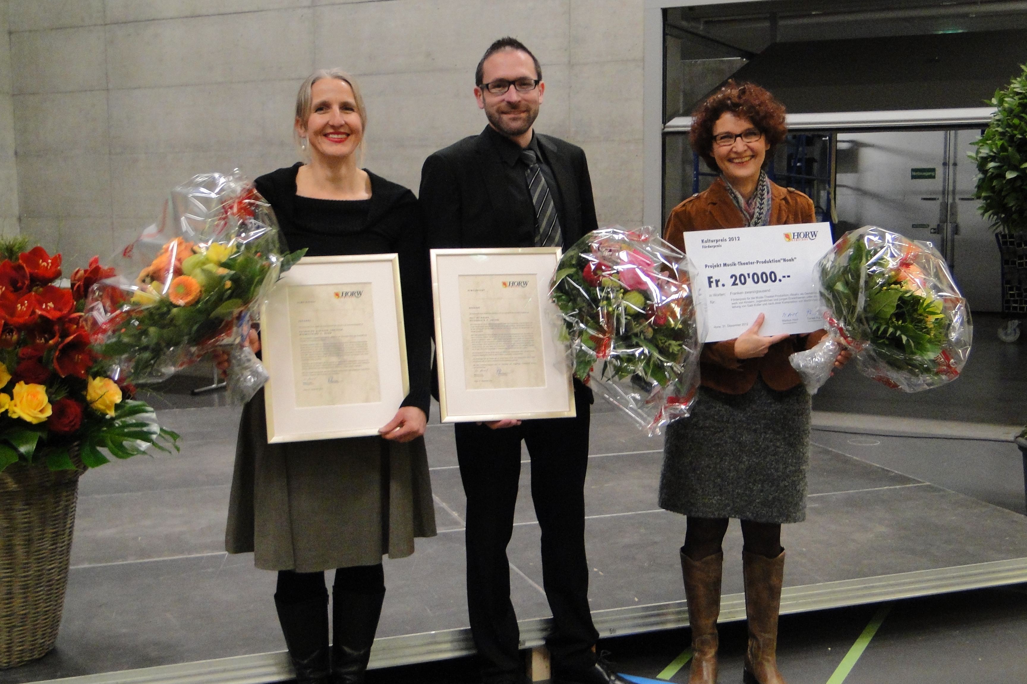 Die Gemeinde Horw vergibt den mit 20’000 Franken dotierten Förderpreis 2012 an die Musik-Theater-Produktion Noah. Die Produktion ist ein Gemeinschaftswerk von über 100 Kindern, Jugendlichen und jungen Erwachsenen.